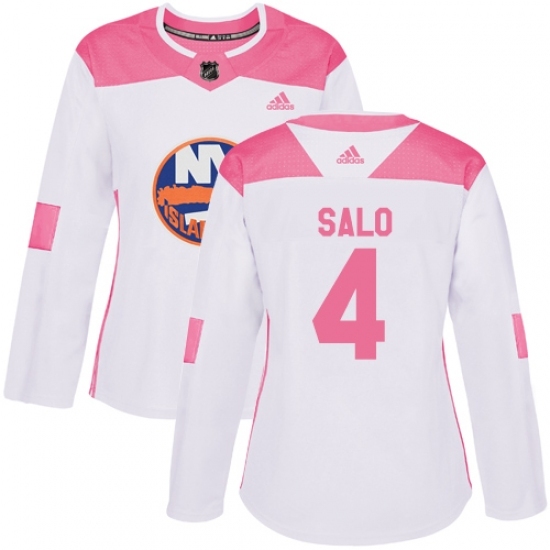 Women's Adidas New York Islanders #4 Robin Salo Authentic White/Pink Fashion NHL Jersey