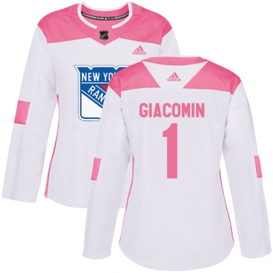 Women's Adidas New York Rangers #1 Eddie Giacomin Authentic White/Pink Fashion NHL Jersey