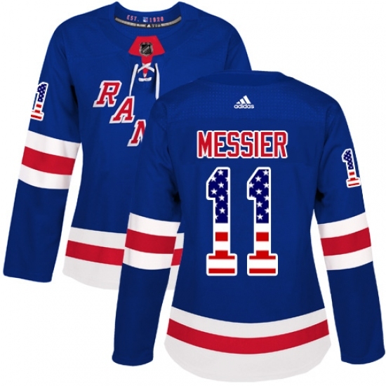 Women's Adidas New York Rangers #11 Mark Messier Authentic Royal Blue USA Flag Fashion NHL Jersey