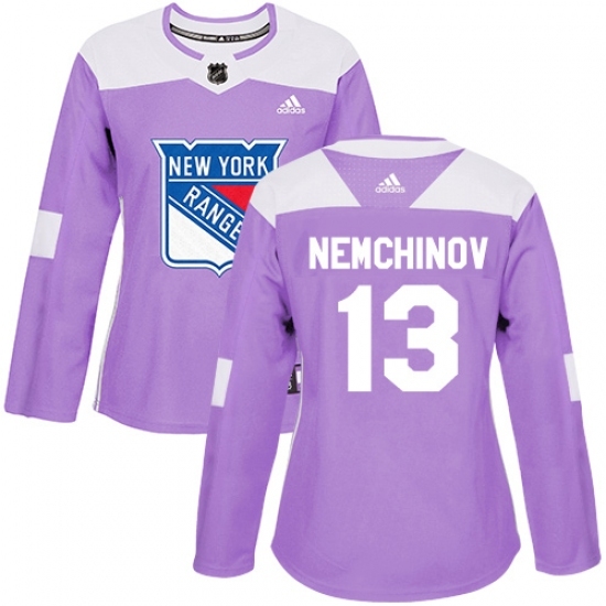 • Women's Adidas New York Rangers #13 Sergei Nemchinov Authentic Purple Fights Cancer Practice NHL Jersey
