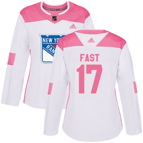 Women's Adidas New York Rangers #17 Jesper Fast Authentic White/Pink Fashion NHL Jersey