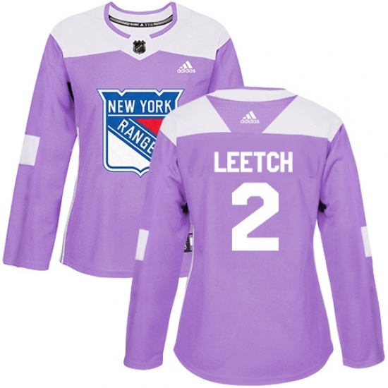 • Women's Adidas New York Rangers #2 Brian Leetch Authentic Purple Fights Cancer Practice NHL Jersey