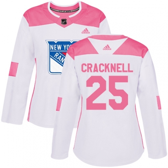 Women's Adidas New York Rangers #25 Adam Cracknell Authentic White/Pink Fashion NHL Jersey