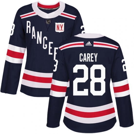• Women's Adidas New York Rangers #28 Paul Carey Authentic Navy Blue 2018 Winter Classic NHL Jersey