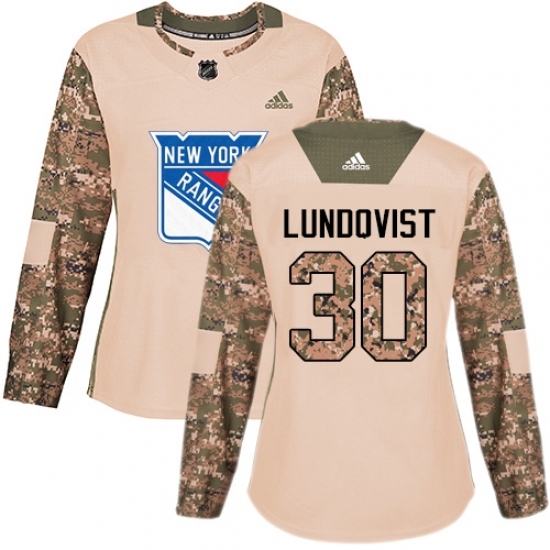 • Women's Adidas New York Rangers #30 Henrik Lundqvist Authentic Camo Veterans Day Practice NHL Jersey