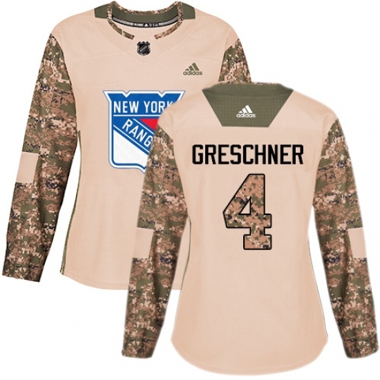 • Women's Adidas New York Rangers #4 Ron Greschner Authentic Camo Veterans Day Practice NHL Jersey