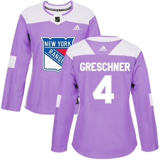 Women's Adidas New York Rangers #4 Ron Greschner Authentic Purple Fights Cancer Practice NHL Jersey