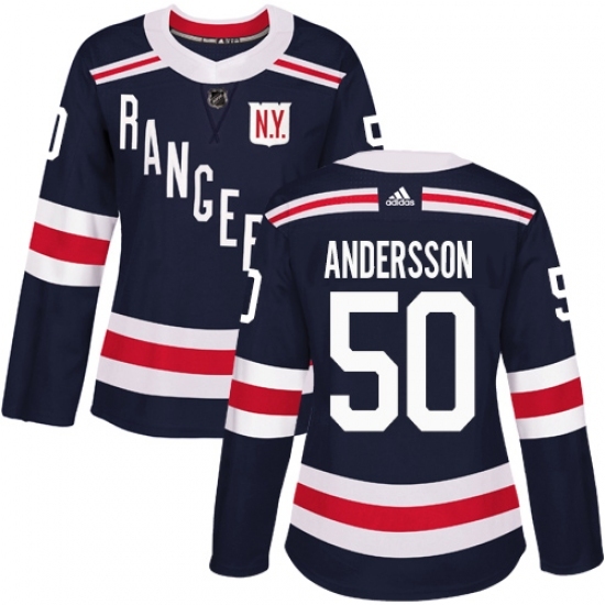 • Women's Adidas New York Rangers #50 Lias Andersson Authentic Navy Blue 2018 Winter Classic NHL Jersey