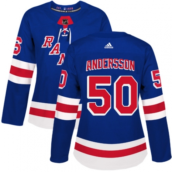 Women's Adidas New York Rangers #50 Lias Andersson Authentic Royal Blue Home NHL Jersey