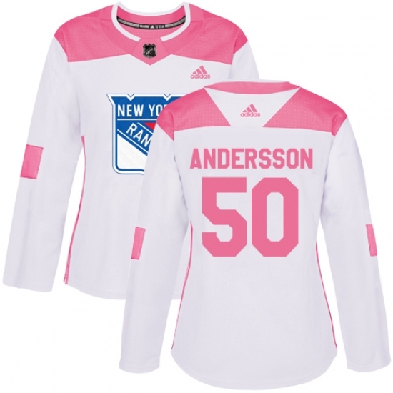Women's Adidas New York Rangers #50 Lias Andersson Authentic White/Pink Fashion NHL Jersey