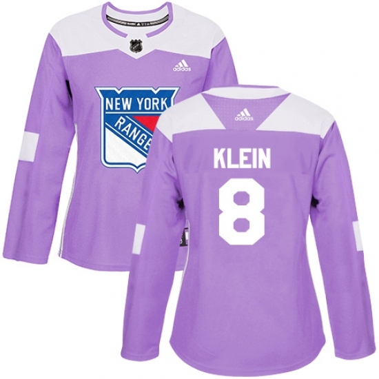 • Women's Adidas New York Rangers #8 Kevin Klein Authentic Purple Fights Cancer Practice NHL Jersey