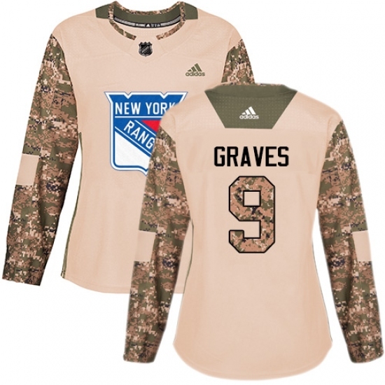 • Women's Adidas New York Rangers #9 Adam Graves Authentic Camo Veterans Day Practice NHL Jersey