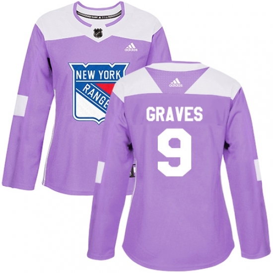 • Women's Adidas New York Rangers #9 Adam Graves Authentic Purple Fights Cancer Practice NHL Jersey