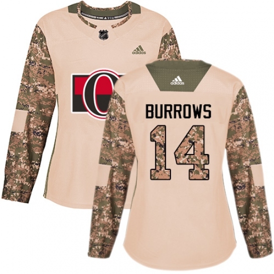 Women's Adidas Ottawa Senators #14 Alexandre Burrows Authentic Camo Veterans Day Practice NHL Jersey