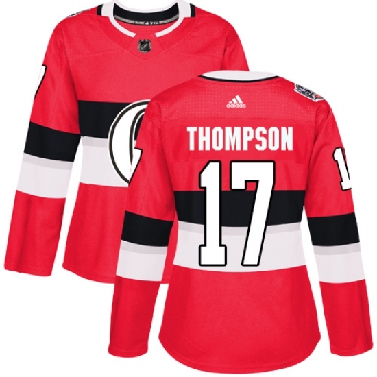 • Women's Adidas Ottawa Senators #17 Nate Thompson Authentic Red 2017 100 Classic NHL Jersey