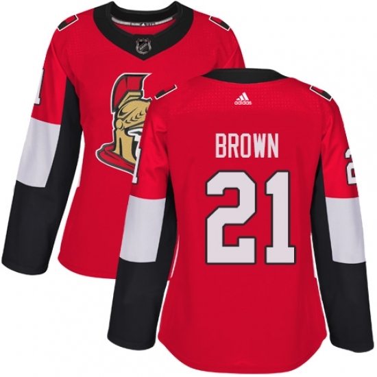• Women's Adidas Ottawa Senators #21 Logan Brown Authentic Red Home NHL Jersey