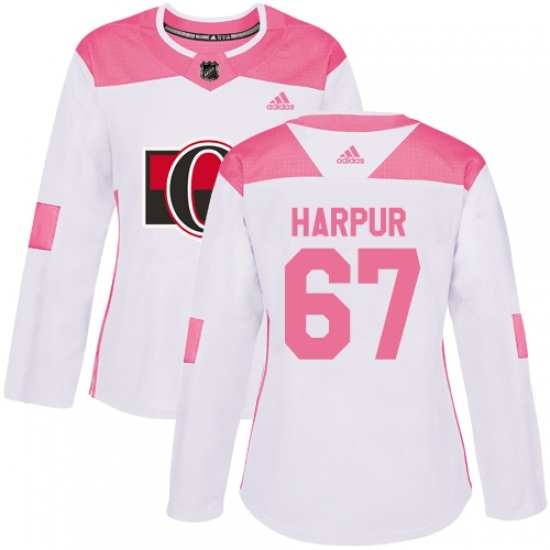 Women's Adidas Ottawa Senators #67 Ben Harpur Authentic White/Pink Fashion NHL Jersey