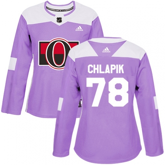 • Women's Adidas Ottawa Senators #78 Filip Chlapik Authentic Purple Fights Cancer Practice NHL Jersey