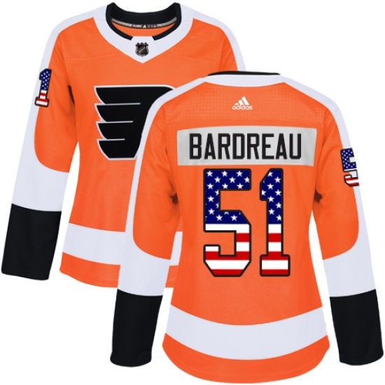 • Women's Adidas Philadelphia Flyers #51 Cole Bardreau Authentic Orange USA Flag Fashion NHL Jersey