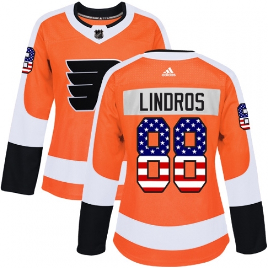 • Women's Adidas Philadelphia Flyers #88 Eric Lindros Authentic Orange USA Flag Fashion NHL Jersey
