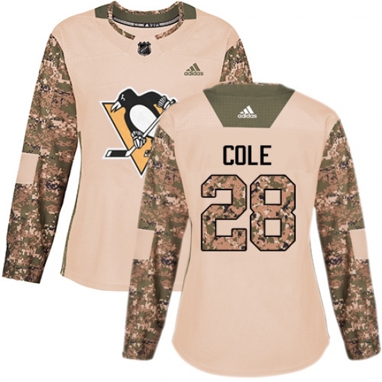 • Women's Adidas Pittsburgh Penguins #28 Ian Cole Authentic Camo Veterans Day Practice NHL Jersey