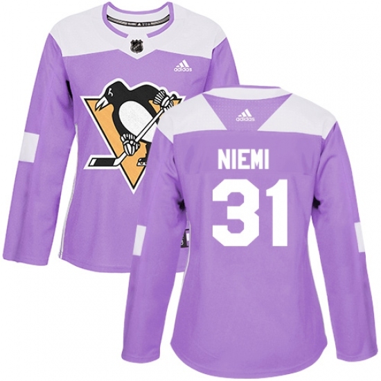 Women's Adidas Pittsburgh Penguins #31 Antti Niemi Authentic Purple Fights Cancer Practice NHL Jersey