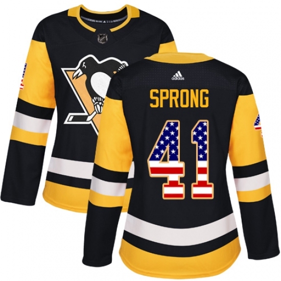 Women's Adidas Pittsburgh Penguins #41 Daniel Sprong Authentic Black USA Flag Fashion NHL Jersey