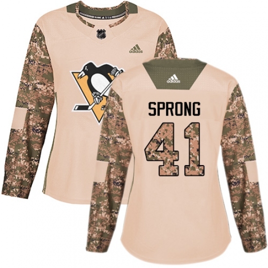 • Women's Adidas Pittsburgh Penguins #41 Daniel Sprong Authentic Camo Veterans Day Practice NHL Jersey