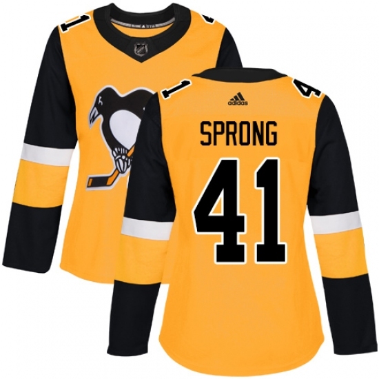 • Women's Adidas Pittsburgh Penguins #41 Daniel Sprong Authentic Gold Alternate NHL Jersey