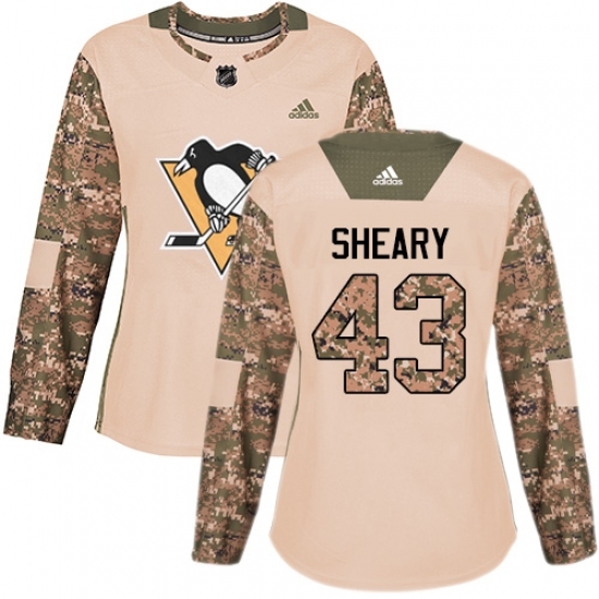 • Women's Adidas Pittsburgh Penguins #43 Conor Sheary Authentic Camo Veterans Day Practice NHL Jersey