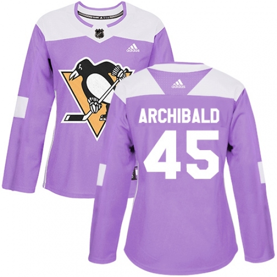• Women's Adidas Pittsburgh Penguins #45 Josh Archibald Authentic Purple Fights Cancer Practice NHL Jersey