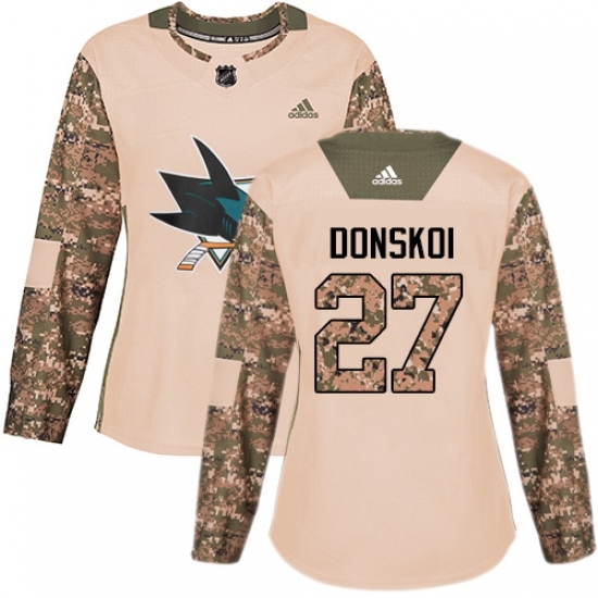 • Women's Adidas San Jose Sharks #27 Joonas Donskoi Authentic Camo Veterans Day Practice NHL Jersey