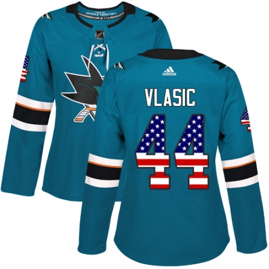 • Women's Adidas San Jose Sharks #44 Marc-Edouard Vlasic Authentic Teal Green USA Flag Fashion NHL Jersey