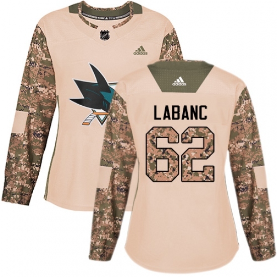 Women's Adidas San Jose Sharks #62 Kevin Labanc Authentic Camo Veterans Day Practice NHL Jersey
