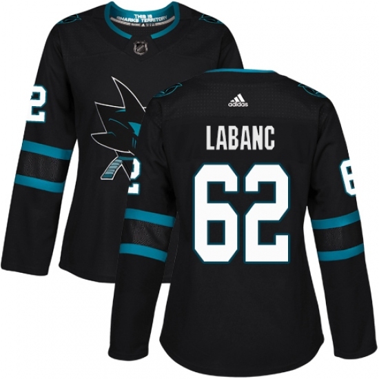 Women's Adidas San Jose Sharks #62 Kevin Labanc Premier Black Alternate NHL Jersey