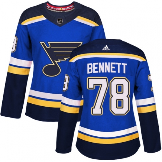 • Women's Adidas St. Louis Blues #78 Beau Bennett Authentic Royal Blue Home NHL Jersey