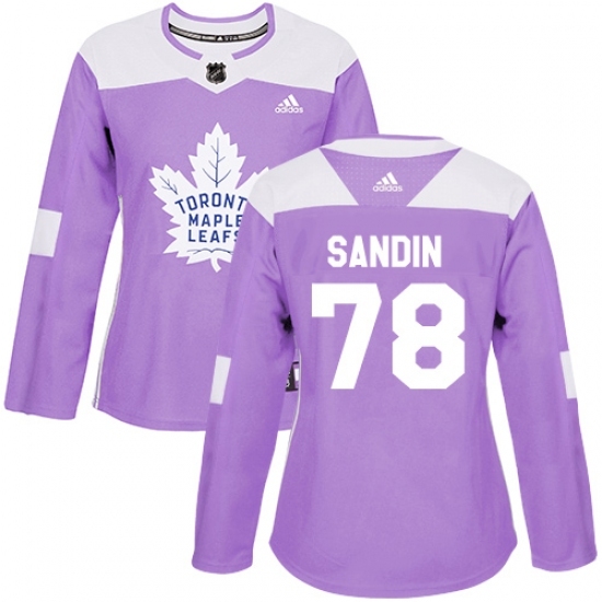 • Women's Adidas Toronto Maple Leafs #78 Rasmus Sandin Authentic Purple Fights Cancer Practice NHL Jersey