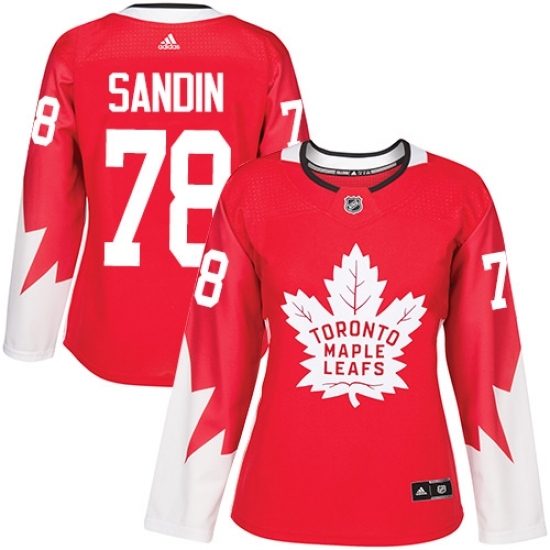 • Women's Adidas Toronto Maple Leafs #78 Rasmus Sandin Authentic Red Alternate NHL Jersey