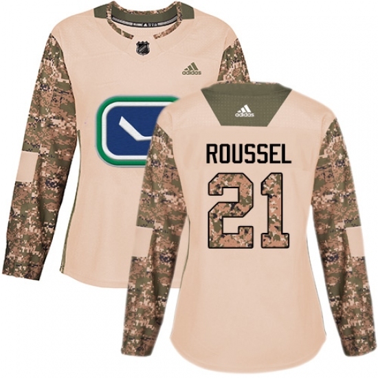 • Women's Adidas Vancouver Canucks #21 Antoine Roussel Authentic Camo Veterans Day Practice NHL Jersey