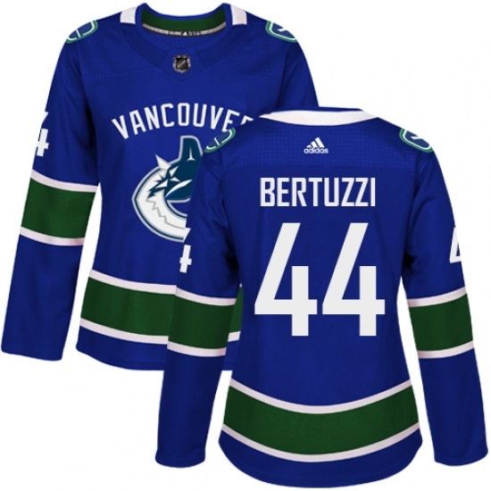 • Women's Adidas Vancouver Canucks #44 Todd Bertuzzi Authentic Blue Home NHL Jersey