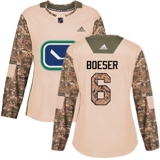 Women's Adidas Vancouver Canucks #6 Brock Boeser Authentic Camo Veterans Day Practice NHL Jersey