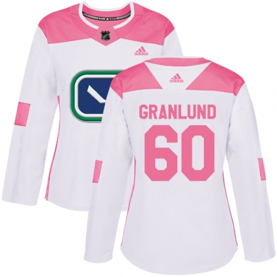 • Women's Adidas Vancouver Canucks #60 Markus Granlund Authentic White/Pink Fashion NHL Jersey