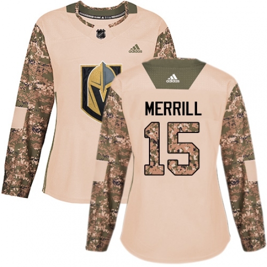 • Women's Adidas Vegas Golden Knights #15 Jon Merrill Authentic Camo Veterans Day Practice NHL Jersey