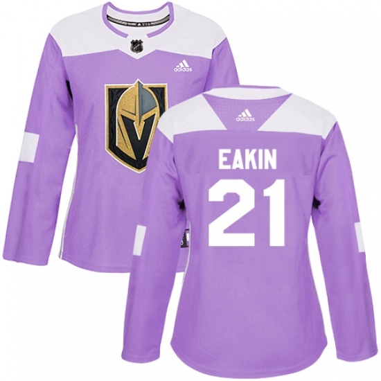 Women's Adidas Vegas Golden Knights #21 Cody Eakin Authentic Purple Fights Cancer Practice NHL Jersey