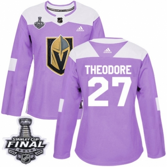 Women's Adidas Vegas Golden Knights #27 Shea Theodore Authentic Purple Fights Cancer Practice 2018 Stanley Cup Final NHL Jersey