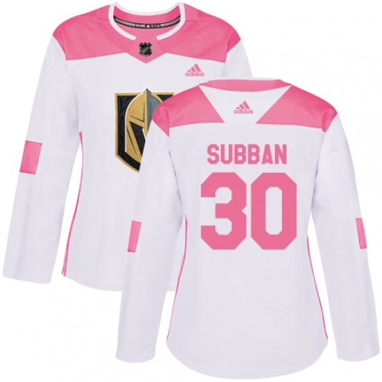 Women's Adidas Vegas Golden Knights #30 Malcolm Subban Authentic White/Pink Fashion NHL Jersey
