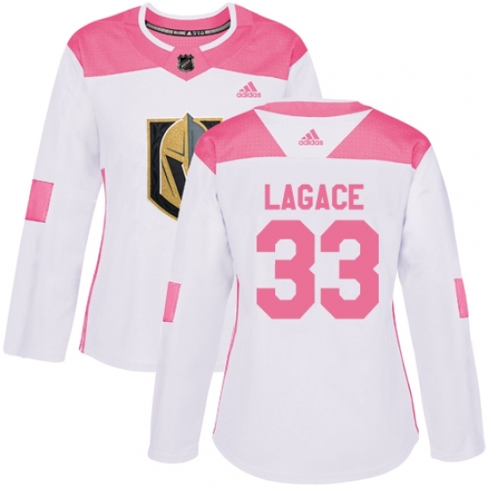 • Women's Adidas Vegas Golden Knights #33 Maxime Lagace Authentic White/Pink Fashion NHL Jersey