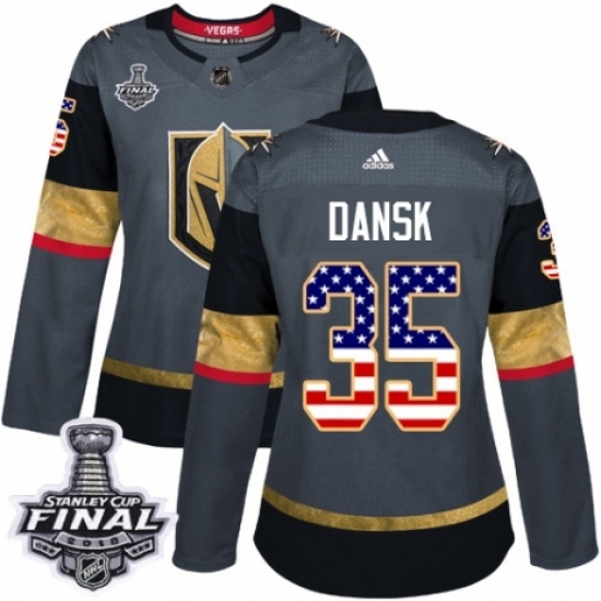 • Women's Adidas Vegas Golden Knights #35 Oscar Dansk Authentic Gray USA Flag Fashion 2018 Stanley Cup Final NHL Jersey