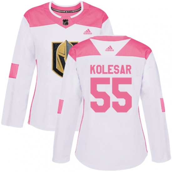 Women's Adidas Vegas Golden Knights #55 Keegan Kolesar Authentic White/Pink Fashion NHL Jersey