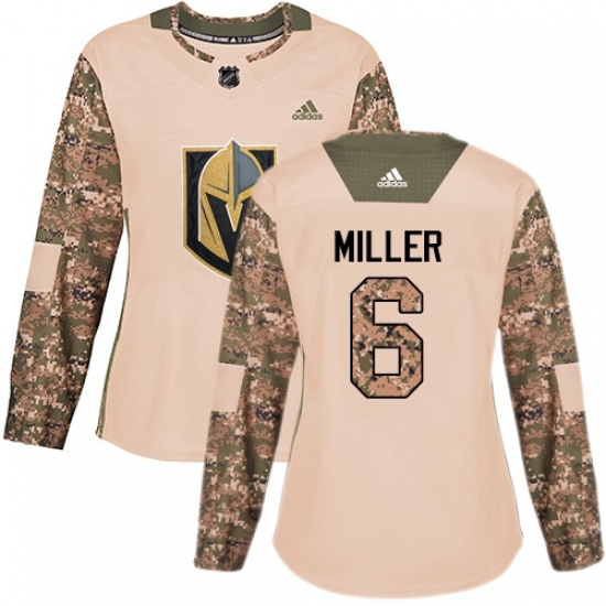 • Women's Adidas Vegas Golden Knights #6 Colin Miller Authentic Camo Veterans Day Practice NHL Jersey